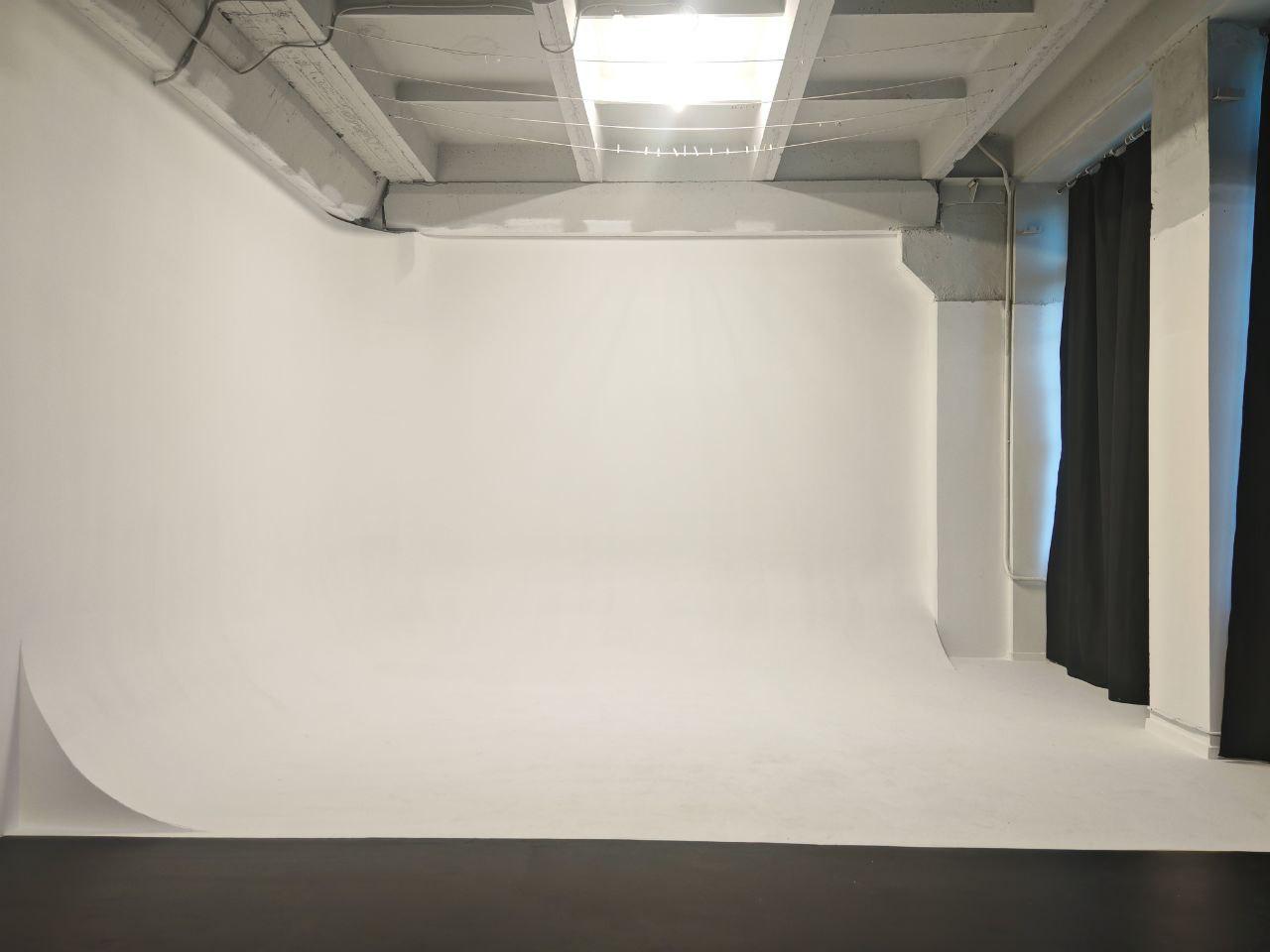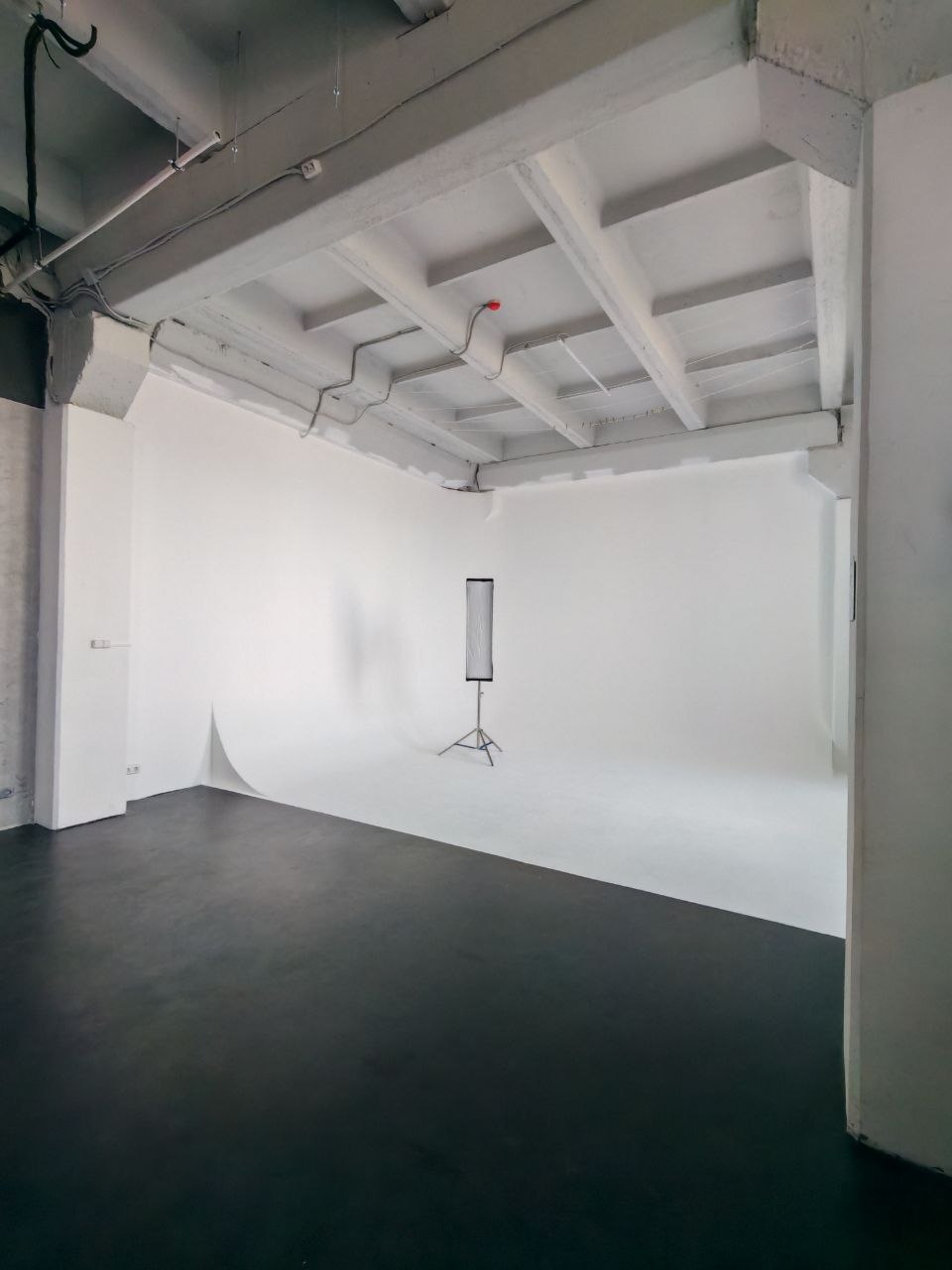 • Угловая белая циклорама: cердце зала, позволяющее снимать масштабные сцены и динамичные образы без лишних теней и углов.